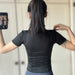 This high-quality women’s training top is designed to support your waist slimming goals. Made from breathable, quick-drying fabric, it features a snug, slim fit with a stand collar and a full front zipper for easy wear and ventilation. The short sleeves provide comfort and freedom of movement, making it ideal for yoga, fitness, or casual summer workouts.